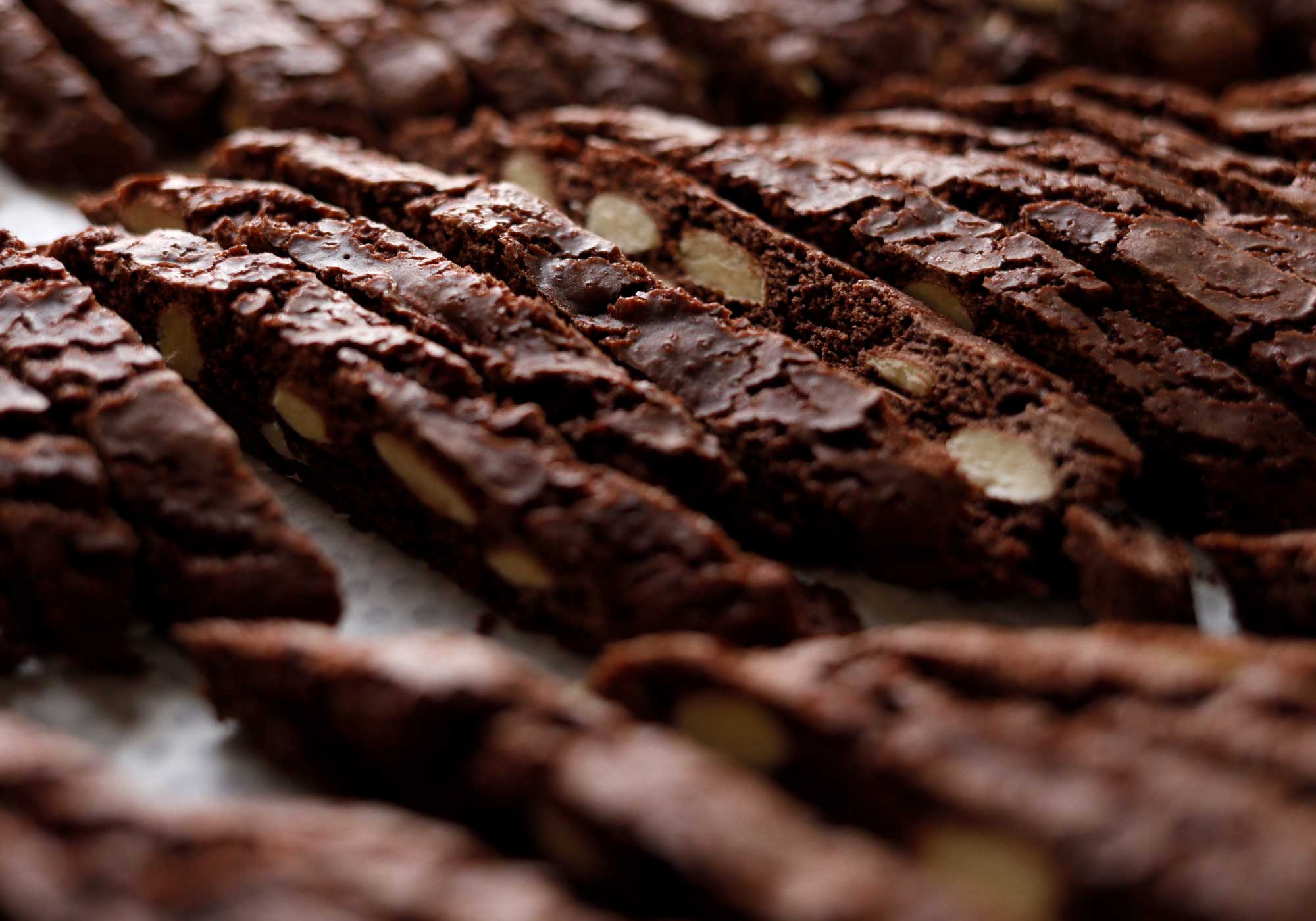 This pastry tastes of chocolate and sweet almonds through and through. Delicately tart and crispy to the bite.